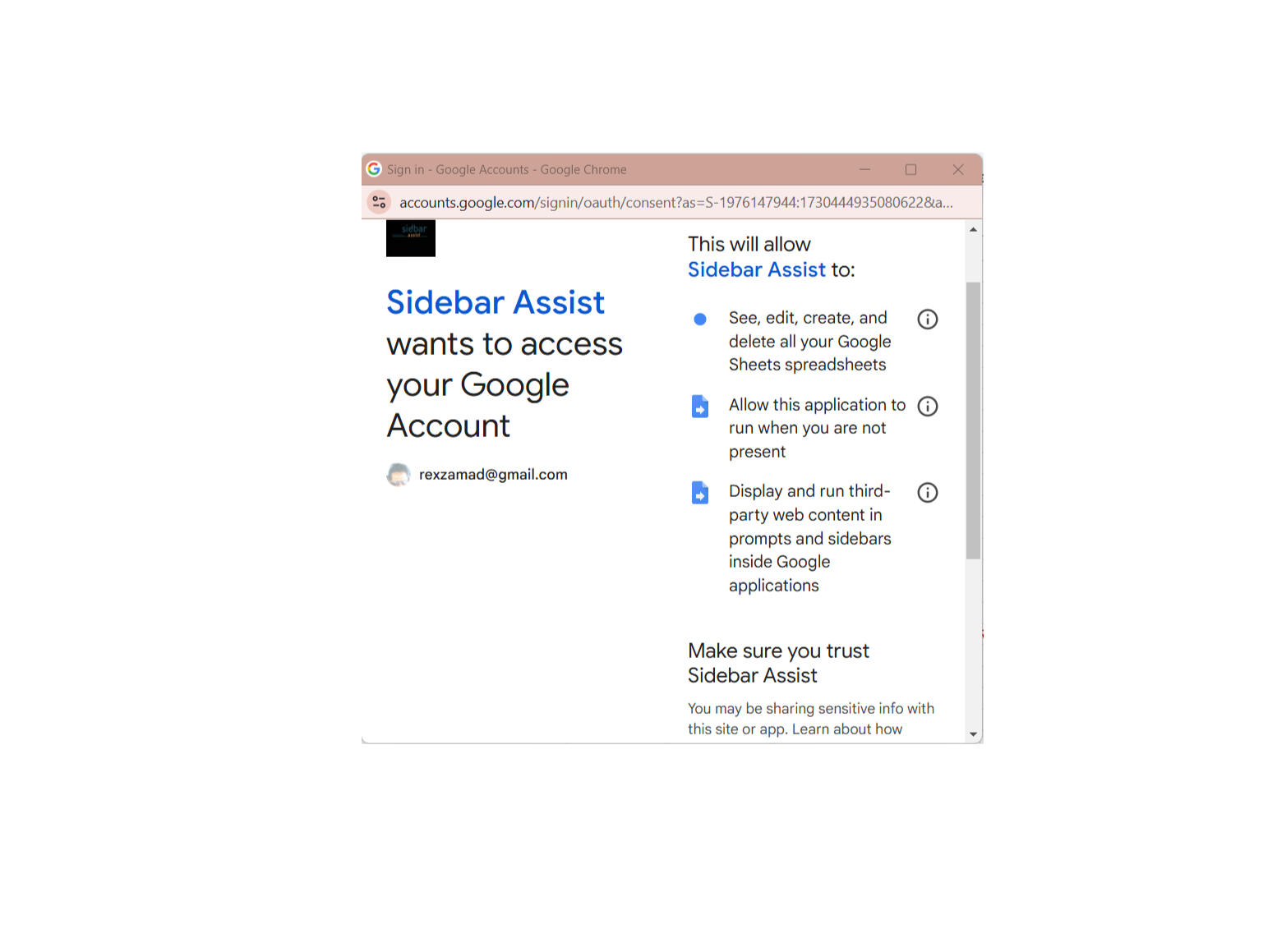 Usage Data: We may collect information about how you use Sidebar Assist, such as the functions you use, the frequency of use, and the types of data you process.